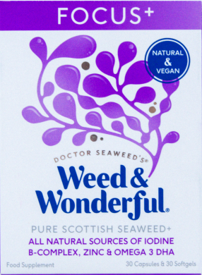 Meet your new secret weapon for clarity: Focus+ combines plant‑based Omega‑3 DHA, B‑vitamins, algae and Scottish seaweed to naturally support concentration, brain function, vision and energy. Vegan-friendly and crafted with clean ingredients, it’s a stylish and smart addition to any wellness routine.