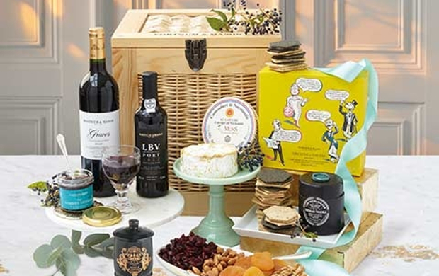 Tangy cheddar, ripe camembert, oozing brie, all washed down with full-flavoured Graves and rich, almost syrupy Late Bottled Vintage port? Delectably savoury biscuits, sweet damson cheese, a handful of dried fruit and nuts to complement the whole divine shebang? We highly recommend you present Papa with this luxurious hamper after lunch this Sunday, and join him in wolfing down the goodies.