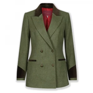 This lightweight wool fitted jacket is a refined and elegant piece. It’s an exclusive WG design with the popular signature cuff detail which distinguishes our designs. The double-breasted style is a more traditional feature and the velvet trim on the collar and pockets offer unending softness. The muted silver buttons look fabulous against the pistachio green herringbone and the hand stitching is finished to the highest quality. The mid-length also gives this wool jacket a little more edge!