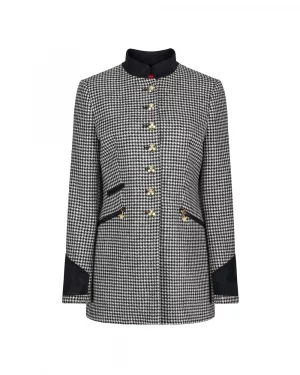Knightsbridge in Aquamarine is fresh-faced and ready for summer. The beautiful turquoise wool and pink check are bright, summery shades. The lightweight wool blend makes it warm but breathable, and the longer line is flattering for any silhouette. The mandarin collar will rest snugly against your neck and the contrast pocket and collar detail lifts the look beautifully. The silver buttons and crown zip details are exquisite, and the signature WG cuff is delightful.Knightsbridge Houndstooth Jacket, £350