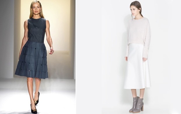 We have officially entered the season to be jolly and as the temperature continues to drop: if you don’t want to spend the next few months encased in jeans, then it’s time to embrace my favorite new AW13 trend – The Full Skirt. While the mini is still welcome to make an appearance at the odd party this Christmas, it’s all about the mid-length, full and flirty feminine skirt.