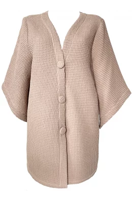This is the ultimate in loungewear from London-based designer Kriss Soonik. A Kimono-inspired jacket with big buttons at the front, closeable with snaps and made out of soft waffle cotton. Comfortable and oh so stylish, we’re obsessed.