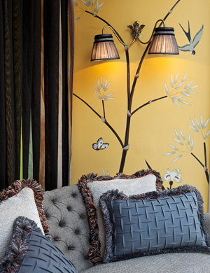 For us fashion and interiors are never far removed from each other and we are constantly inspired by the catwalk. This season we have used a lot of suede, wool, linen and lace fabrics in a palette of purples, oranges and blacks which were abundant in collections such as Prada, Gucci and Christopher Kane. We like to push the boundaries of soft furnishing and look to tailoring to use upholstery fabrics in new and interesting ways. Aside from the catwalk, we look to different design eras and our creations vary from theatrical and opulent to simple and elegant. We have been going through a phase of being inspired by Victorian decadence but as the mood shifts, so will our designs.