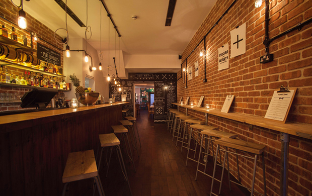 Honky Tonk is situated in a lovely area, away from the bustling King’s Road, but I expected the place itself to be a little more bustling. Wondering this aloud to the waitress, she assured me it would fill up once the band had started. It didn’t, and they didn’t start for a good hour or so. This wouldn’t have mattered if it weren’t for the terrible choice of tracks blaring out of the speakers, all of which had us mentally calling out for the band to get on and start. When they did finally come on, our ears became a little happier but not overly; the band members were middle-aged, middle-class and daddyish and the music reflected this – more mediocre blues than the jumping jazz I was lead to expect.