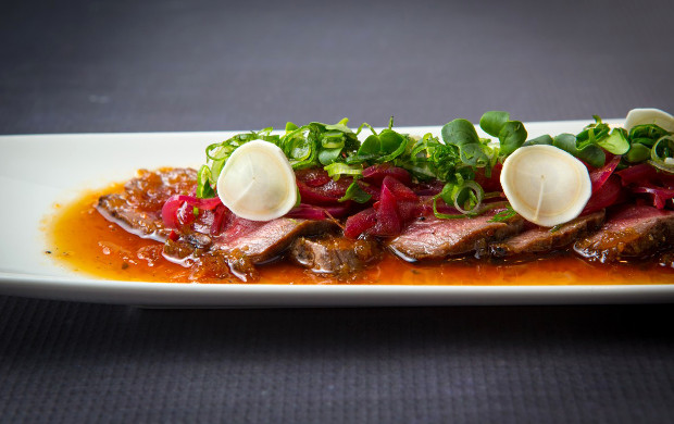Contemporary Japanese has arrived in Victoria, served up in a period corner building that opens into a large, airy space split into the main restaurant and well-stocked bar downstairs and a sushi bar on the upper level, up the spiral staircase past a statement chandelier. The decor is sophisticated and minimalist—even the chandelier feels modern and sleek, like giant glowing dandelions hanging head down from the ceiling.