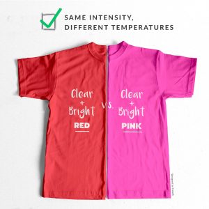 - Compare better-performing colours against each other to narrow down on your dimensions even more, for example: if clearer colours made you look more glowing (compared to greyer tones) then try to compare cooler clear colours to warmer clear colours to try work out your optimal colour temperature, or try to compare lighter clear colours to darker clear colours to figure out your best darkness level; or, if warmer colours seemed more natural-looking than cooler tones then try to compare clearer warm colours to more muted ones to find your best level of vibrancy or compare lighter warm tones to darker ones to work out your optimal darkness levels and so on.