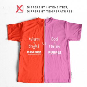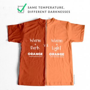 - Take a look at the selection of colours you’ve gathered and try to create some comparable pairings. Colours have 3 dimensions (lightness-darkness, warmness-coolness and greyness-clearness), so the idea is to try and compare like for like colours, only changing one dimension at a time. Here are some visual examples of good colour pairings versus some a less useful colour pairings: