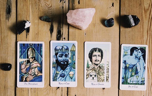 The next cards I get are the King of Cups and the King of Swords: “The message of the king of swords with the king of cups suggests a marrying and union of both the emotional realm (the feminine, the yin) and the mental realm (masculine, yang) for the answers in which you seek (the hierophant) lays within this union.
