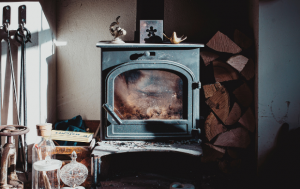 ...traditional low hanging black beams. Off to the right is a wood burning fire surrounded by a mix of vintage furniture – it’s just begging for a good book and...