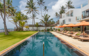 ...picture wall looks out across the emerald hued pool. Burnt orange parasols remind us that we are in heart of cinnamon growing country. To eat The hotel offers full board...