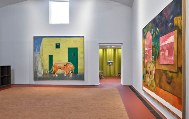Transforming the gallery into a listening space, House of Music brings together recent paintings and, for the first time, integrates sound into Doig’s work. The exhibition features two sets of rare, restored analogue speakers, originally designed for cinemas and large auditoriums. Music selected by the artist – from his substantial archive of vinyl records and cassette tapes accumulated over decades – plays through a set of ‘high fidelity’ 1950s wooden Klangfilm Euronor speakers.